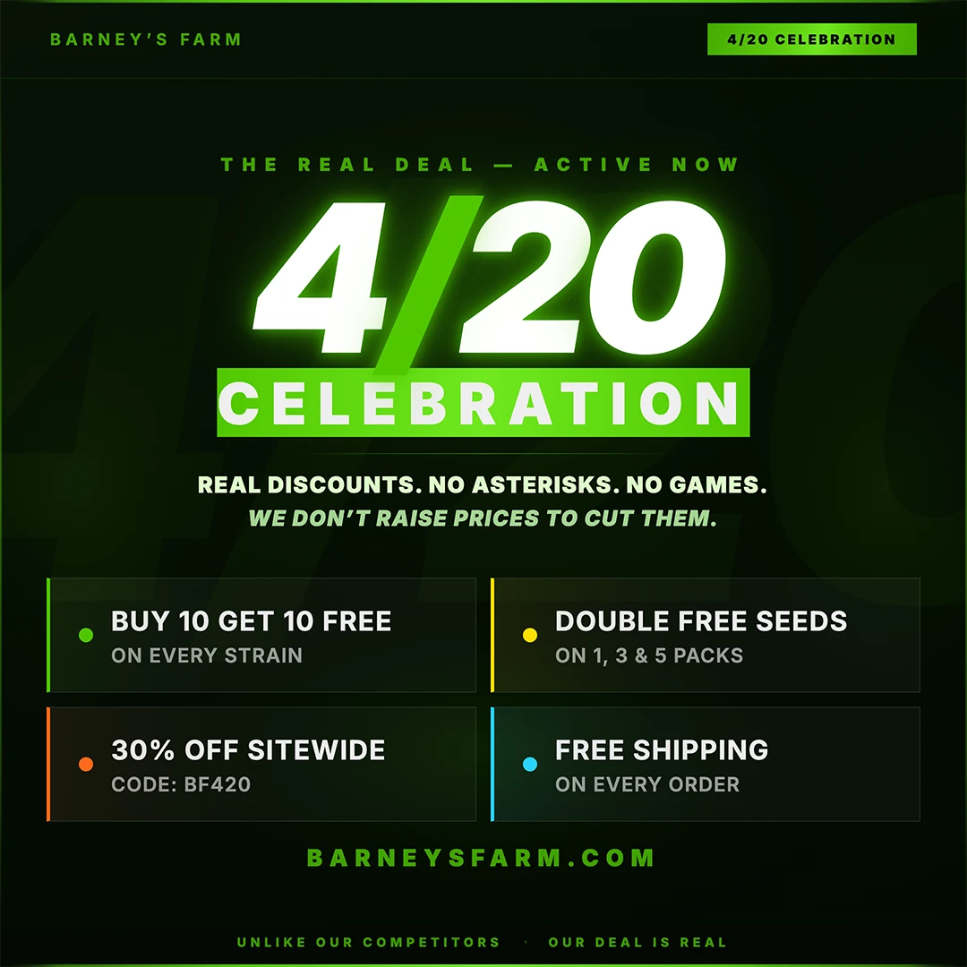 A Barney’s Farm apresenta-lhe a sua coleção de elite de variedades de cannabis premiadas. Estas variedades representam algumas das melhores genéticas da cannabis no planeta Terra. Mestres do cultivo de cannabis, com mais de 40 cannabis cups em seu nome, a Barney’s Farm reina no seu ofício e dominou a High Times Cannabis Cup ao longo dos anos. Vitórias nos escalões Melhor Indica, Melhor Sativa e Melhor Geral falam por si. Certifique-se de que prova estas sementes vencedoras de campeonatos hoje mesmo.